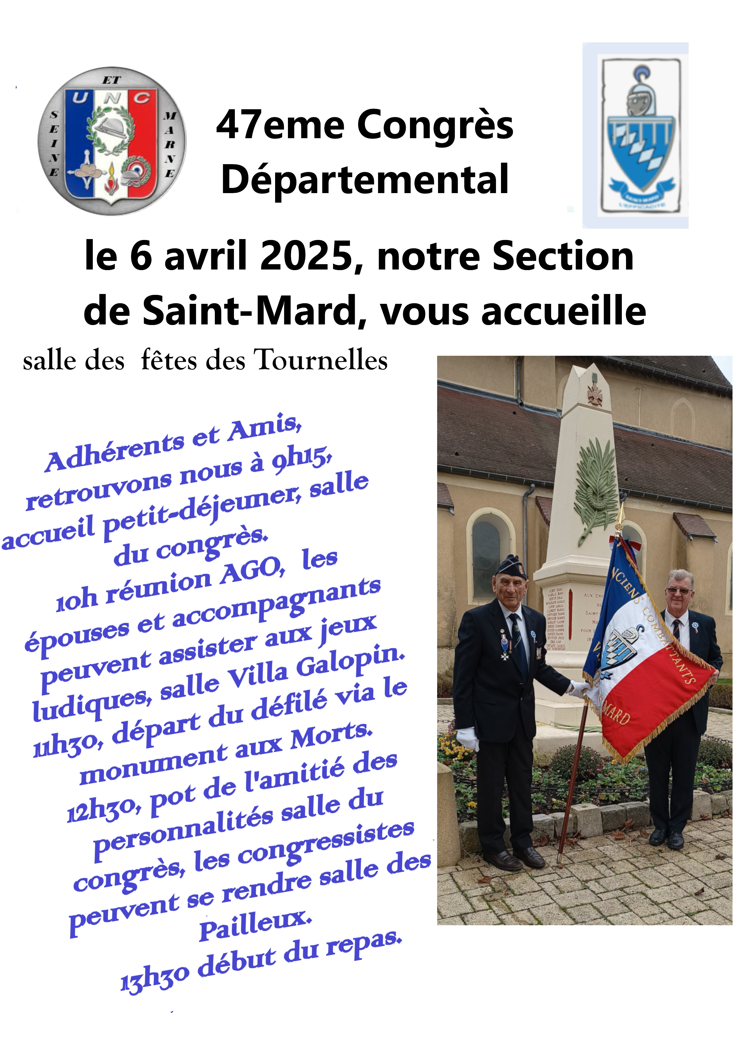 Retrouvons nous à la Salle des Fêtes des Tournelles bvd de la République (se garer au parking) en face à la salle Localisation plan de St Mard avec les repères des différents lieux Le timing de cet évènement |